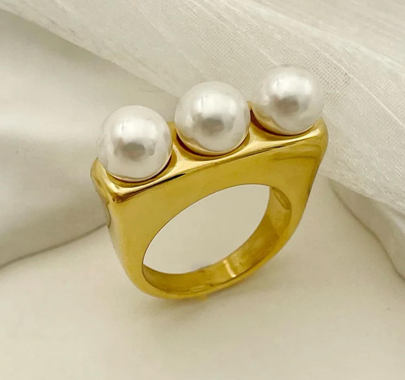 Ατσάλινο αδιάβροχο και υποαλλεργικο επιχρυσωμένο 18 κ δαχτυλίδι με πέρλες γλυκού νερού
