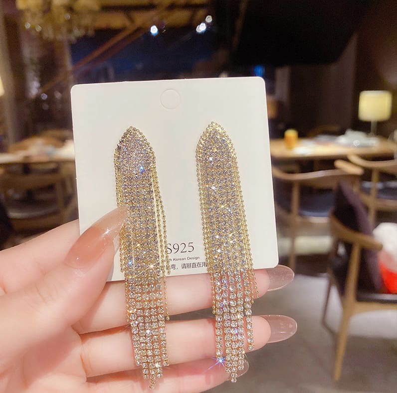 Ατσάλινα, (επιχρυσωμένα 18κ., αδιάβροχα και υποαλλεργικά) κρεμαστά σκουλαρίκια με κρυστάλλους ζιργκόν.