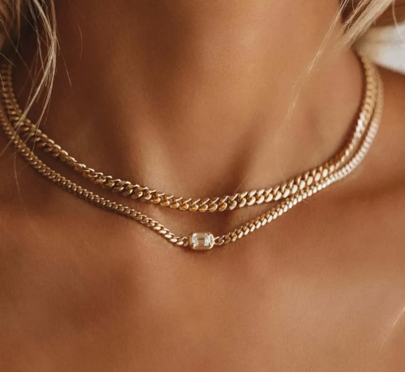 Layering Ατσάλινο (επιχρυσωμένο 18κ., αδιάβροχο και υποαλλεργικό) κολιέ αλυσίδα με κρύσταλλο ζιργκόν.
